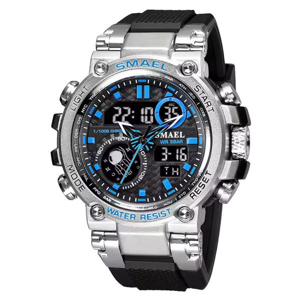 Este relógio foi feito para quem enfrenta desafios com estilo. Com resistência a impactos e à água, o Smael oferece alta performance e qualidade para o seu dia a dia. Seu design robusto e imponente garante que você se destaque em qualquer ambiente, seja profissional ou casual. Com tecnologia de ponta, o Smael é o relógio ideal para quem busca não só resistência, mas também uma presença marcante.
