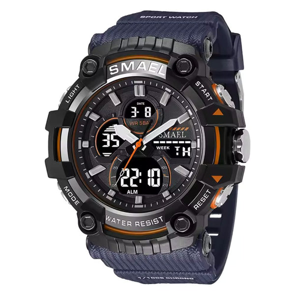 O Smael é mais que um simples relógio; é um acessório que transmite poder e confiança. Com resistência a impactos e água, ele é perfeito para quem precisa de durabilidade em qualquer situação. Seu design forte e elegante vai fazer você se destacar onde quer que vá. O Smael é para quem quer o melhor e não se contenta com menos.